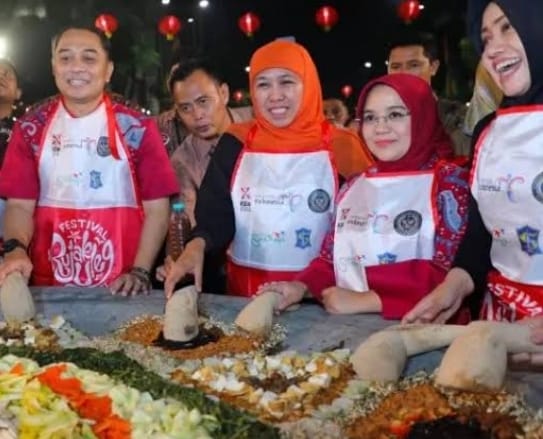 Surabaya, (pawartajatim.com) – Siapa yang tak kenal dengan menu khas Surabaya yang satu ini? Yaa…., makanan yang berbahan rebusan sayur kangkong, tauge, irisan buah, irisan tahu goreng, tempe goreng, cingur/hidung sapi goreng, serta disiram dengan bumbu petis, kacang goreng, sisiran pisang kluthuk, gula merah, garam, dan air asam ini memiliki tempat tersendiri dihati arek-arek Suroboyo dan masyarakat Jawa Timur/Jatim. Antusiasme masyarakat disambut baik oleh Pemerintah Kota Surabaya, setiap peringatan hari jadi Kota Surabaya, dilakukan kegiatan Festival Rujak Uleg.