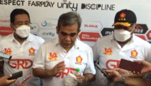 Acara Football For Friendship Tim Gerindra Vs PWI Jatim ini dihadiri langsung, Sekjen DPP Partai Gerindra Ahmad Muzani, Ketua DPD Partai Gerindra Jatim, Anwar Sadad, Rahmat Muhajirin dan beberapa Anggota DPR RI Fraksi Gerindra, Ketua PIRA Sidoarjo Mimik Idayana dan DPC Partai Gerindra Sidoarjo. (rin)