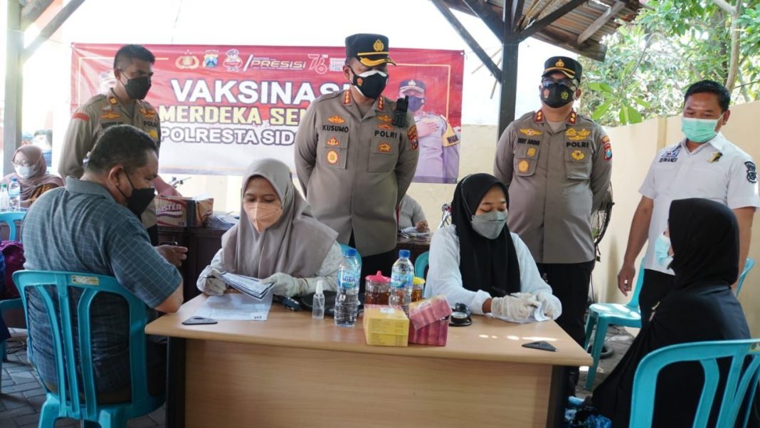 Sidoarjo, (pawartajatim.com) – Akselerasi vaksinasi Covid-19 menyasar pedesaan terus dilakukan Polresta Sidoarjo dan jajaran. Melalui vaksinasi keliling pedesaan, Kapolresta Sidoarjo berharap pihaknya terus masifkan vaksinasi untuk terbentuknya herd immunity bagi masyarakat.