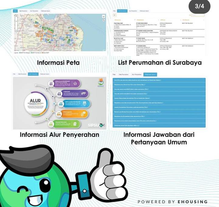 Mulai dari peta sebaran perumahan se-Surabaya yang mempunyai kewajiban penyerahan PSU, data identitas perumahan dan progres penyerahan PSU perumahan, alur penyerahan PSU oleh warga atau perumahan yang pengembangnya tidak diketahui keberadaannya dan berkewajiban dalam penyerahan PSU, dan jawaban atas pertanyaan umum seputar penyerahan PSU.