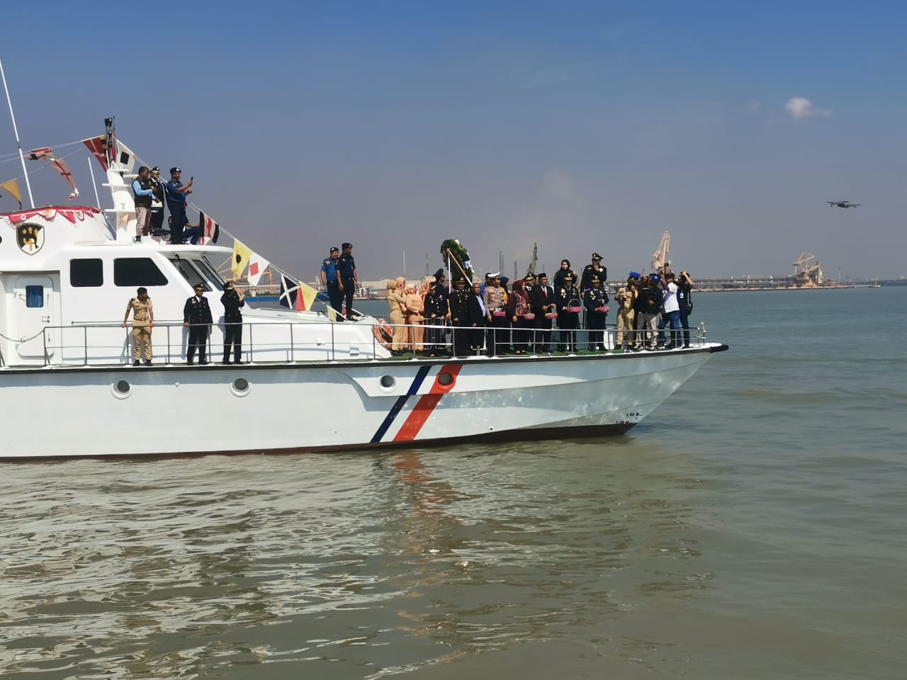 Dan 1 ukuran kecil dari Kapal KPLP Gresik. Kapal KPLP 365 dikomandani Capt. Apri berlayar ke area perairan pelabuhan Gresik. Yang memimpin kegiatan Tabur Bunga Sekretaris Daerah (Sekda) Kabupaten Gresik Achmad Washil Miftahul Rachman MT. Sekda sebelumnya bertindak selaku Inspektur Upacara Harhubnas. Turut mendampingi Sekda Achmad Washil,