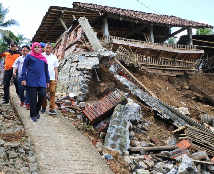Setibanya di lokasi didampingi Bupati Ponorogo Sugiri Sancoko, Gubernur Khofifah harus berganti kendaraan untuk menjangkau pemukiman warga yang terdampak. Dimana, terlihat sejumlah rumah warga ambles, retakan pada dinding-dinding rumah, hingga atap-atap yang runtuh, termasuk akses jalan juga mengalami retakan.