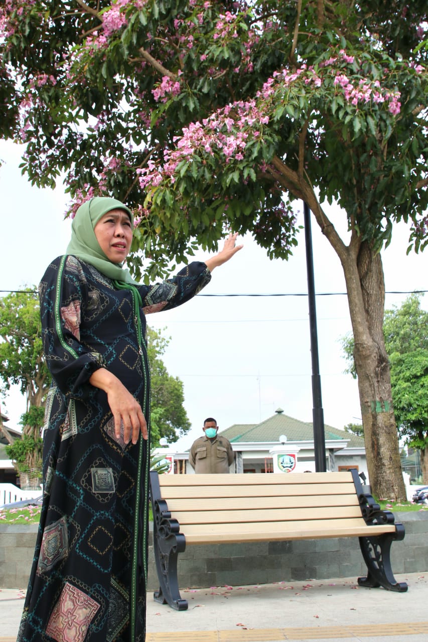 Untuk menikmati keindahannya, Gubernur Jawa Timur Khofifah Indar Parawansa menyempatkan diri untuk menyaksikan suasana Bunga Tabebuya yang sedang bermekaran di Alun-alun Jombang, Sabtu (3/9) sore.