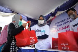 Selain kegiatan gathering, Millennials SIG Group juga membagikan 100 paket sembako kepada masyarakat sekitar Pabrik Gresik, Jawa Timur. Satu paket sembako berisi beras 5 kg, gula 1 kg, minyak goreng 2 kg dan mi instan 5 bungkus. (dra)