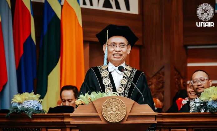 Surabaya, (pawartajatim.com) – Rektor Universitas Airlangga (Unair) Prof Dr Mohammad Nasih SE MT Ak menyampaikan beberapa poin penting dan strategis pada Sidang Dies Natalis ke-70 di Aula Garuda Mukti, Kantor Manajemen Unair Kampus MERR-C Surabaya, Senin (11/11/2024).