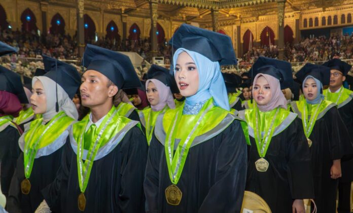 Universitas Negeri Surabaya (Unesa) mengukuhkan 1.553 wisudawan jenjang sarjana terapan, sarjana, magister, dan doktor dalam gelaran wisuda periode 115 di Grha Unesa, Sabtu (30/8/2025). (foto/red)