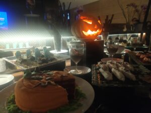 Kemudian dilanjutkan dengan menari bersama dengan para tamu yang diiringi dengan Live DJ. Tak hanya itu, sajian makanan dan minuman bertema Halloween juga turut menghiasi keseruan acara ini. Best Western Papilio Hotel menyajikan menu makanan dan kue-kue seram, seperti menu Appetizer; Spooky Burger, Curds & Crumbs, Buckets O’Bones, Deviled Sandwish, Mummy Salads dan Scream of Tomato, untuk Main Course.