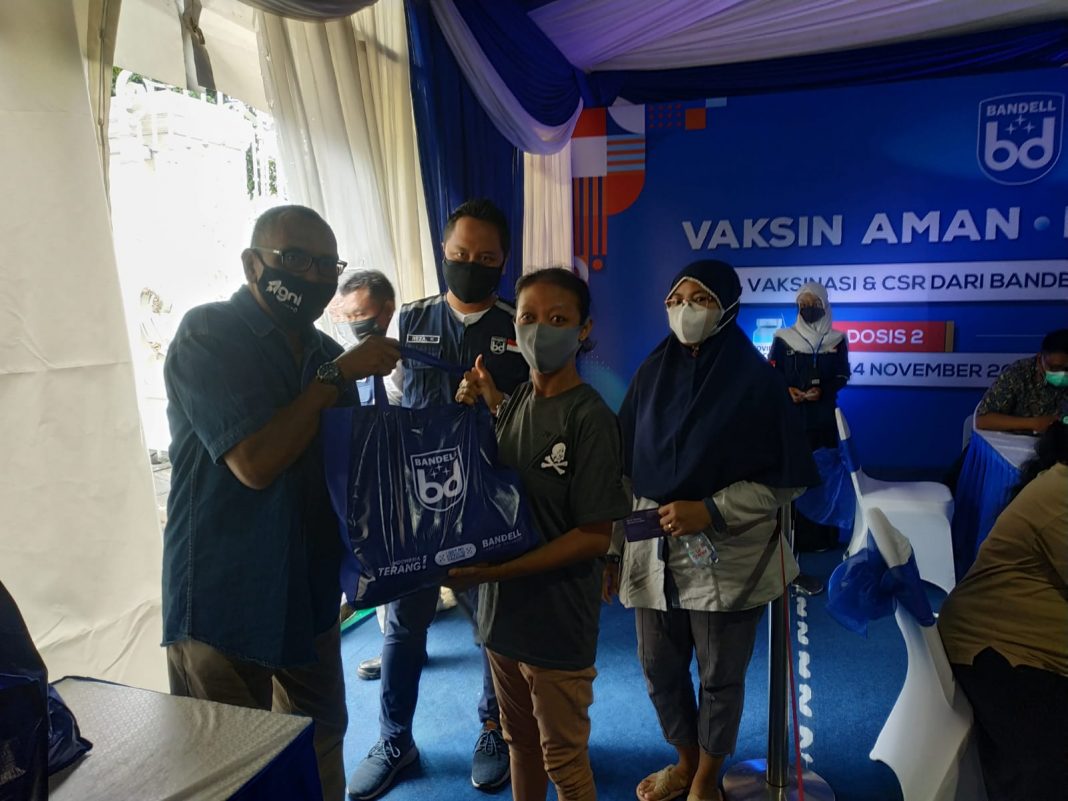 Sidoarjo, (pawartajatim.com) – Selesai vaksin ke-2, program menggenjot herd immunity warga melalui “Vaksin Aman Masyarakat Sehat” dilakukan kegiatan sosial CSR PT Bandell Lighting di Graha Sarana Puri Surya Jaya Gedangan Sidoarjo Minggu (14/11).