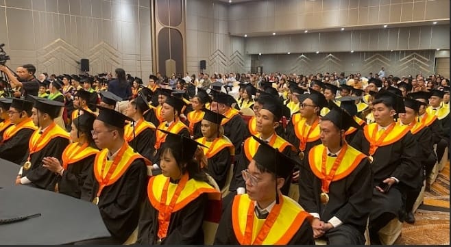 “Dunia menantikan kontribusi anda tidak hanya dengan ijazah, tetapi dengan karakter, kompetensi, dan komitmen moral. Bawalah nilai ‘Caring, Cooperative & Committed’ kemana pun anda pergi, dan buktikan bahwa anda bukan hanya lulusan yang cerdas, tetapi juga berhati mulia dan pantang menyerah,” kata Rektor Ong Peter Leonardo, B.A., M.Ed.