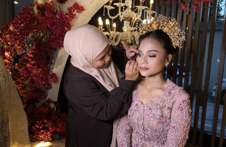 Suasana make-up pengantin oleh tenaga professional. (foto/ist)
